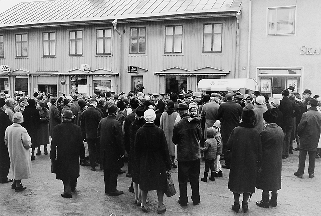 Långa köer framför PR-avdelningens husvagn där helgkorten säljs med