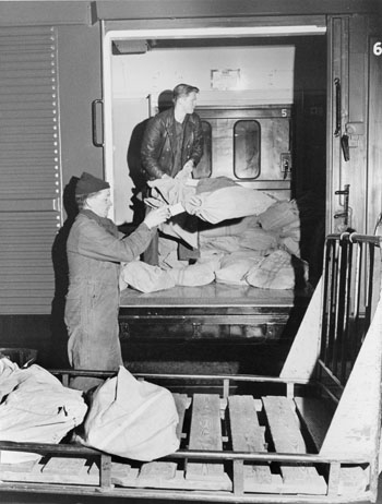 måste en hel del post lastas in vid perrong på Centralstationen. Här