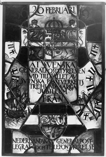 Överlämnad av generalpostdirektör Damme från nederländska postverket till svenska postverket den 26 februari 1936, i anledning av dess 300-årsjubileum.