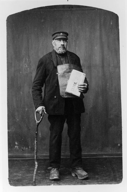 Porträtt av lantbrevbärare Nils Persson i Hurva - Kråkarp på linjen Snogeröd - Rolsberga, 1900-talets början,