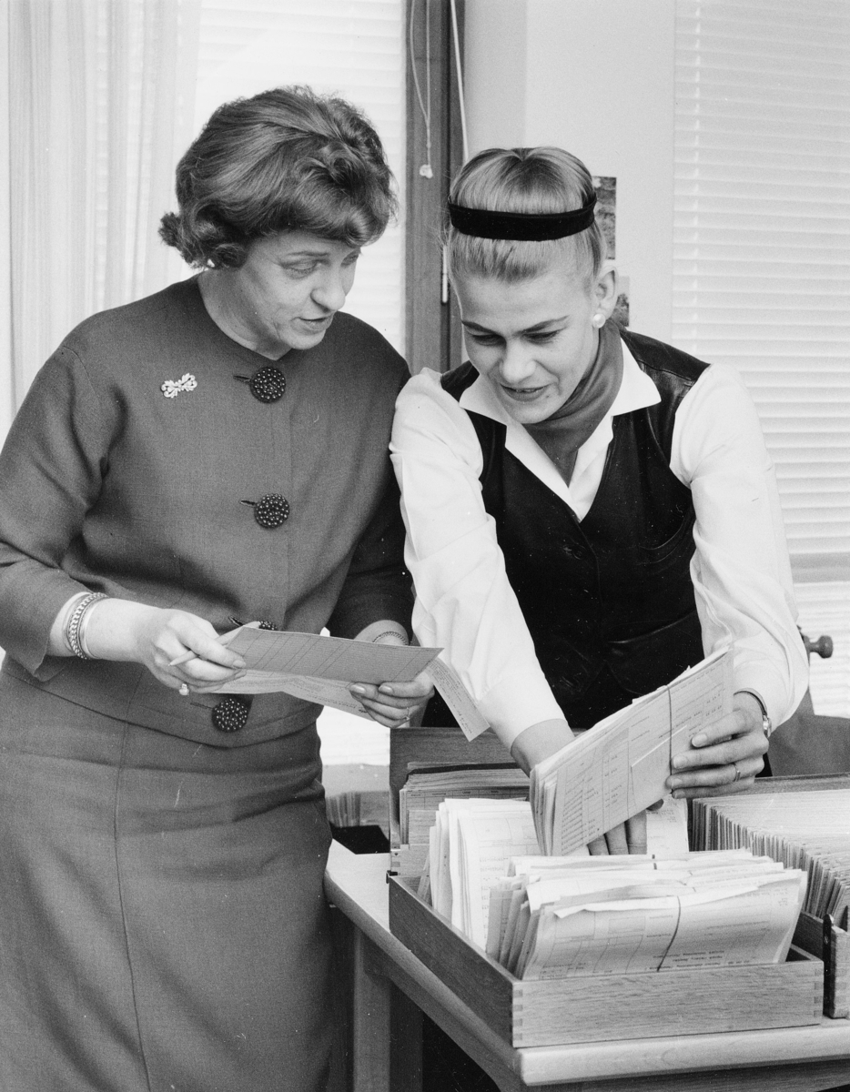 Damerna söker efter uppgifter i avdelningen för sjömanssparande.