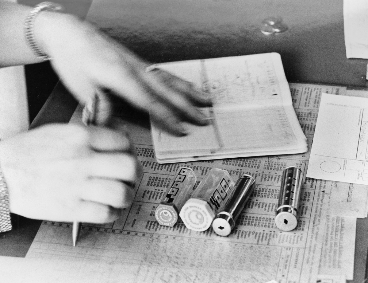 Postexpeditören har räknat inne-hållet i de båda ficksparbössorna av metall, vilka innehållit 10- och 25-öringar och för in beloppet i kundens postsparbanksbok. Vid återlämnandet får kunden två engångsficksparbössor avsedda för 25 st 1-kronor resp 40 st 25-öringar. OBS! Spärrlistorna.
