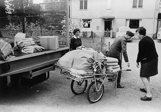 Posten från Alvesta lastas av vid poststationen i Delary. Fpj John
