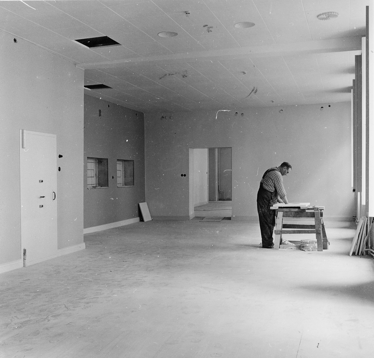 blivande fönster mot trapphallen. Till höger fönster mot Lilla