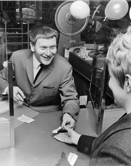 Kundtidning nr 2/1967). Foto 16/4 1967. Långa köer vid