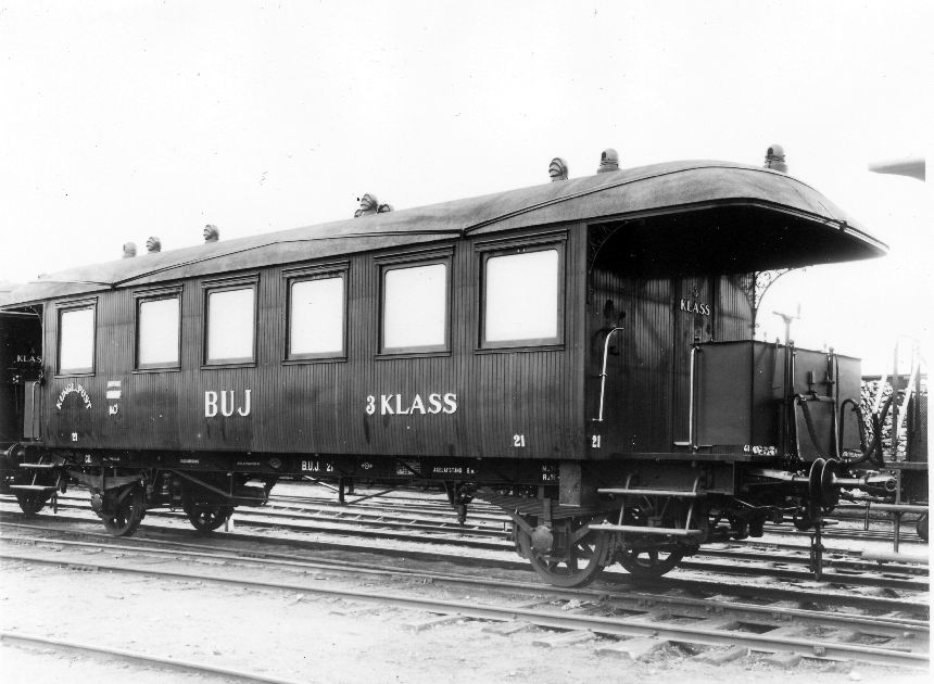 Fotografi föreställande Järnvägspostvagnen Litt CD3 21 på järnvägssträckan Borås-Ulicehamn. Tillverkad 1917.