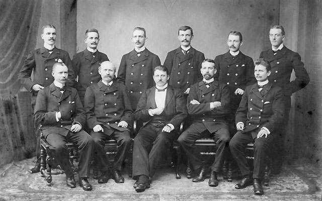 K Lundqvist, O E Lund. Stående från vänster: E R Ekström, J T Lovén,