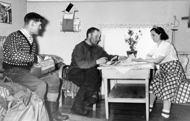 familjen Vinnberg Örnberg, April 1952. Lantbrevbärare Lundmark från Jäckvik, (skidåkande) på linjen Jäckvik - Merkenis (60 km.)