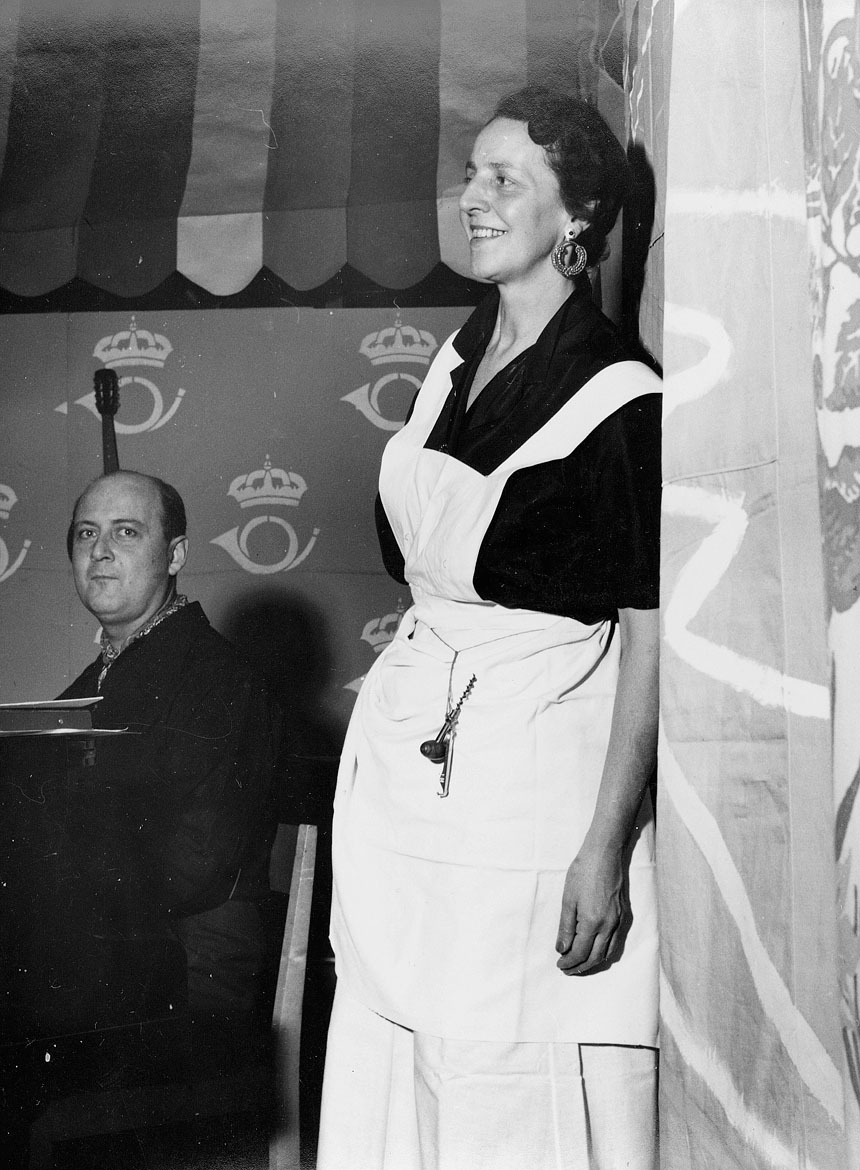 Värdshuset "Den gyldene flygeln". Cabaret med sång och dans i Postgirots lunchrum Klara Norra Kyrkogata, Stockholm, den 28 november 1953.