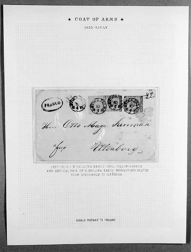 Brev avsänt från Stockholm till Uleåborg 1857.