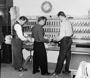Lantbrevbärarna Cyril Falk, Uno Eliasson och Gert Stjernqvist, i