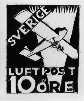Titel: Ej realiserade förslag till frimärke Nattpostflyg, utgivet 9/5 1930. Konstnär: Einar Forseth. Valör 10 öre.