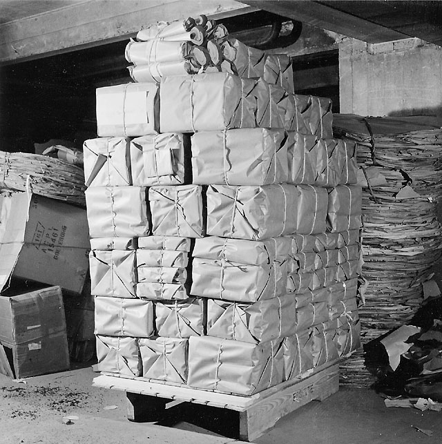 Inslagna gruppkorsband lastas till maximal höjd på pallen. Pallarna