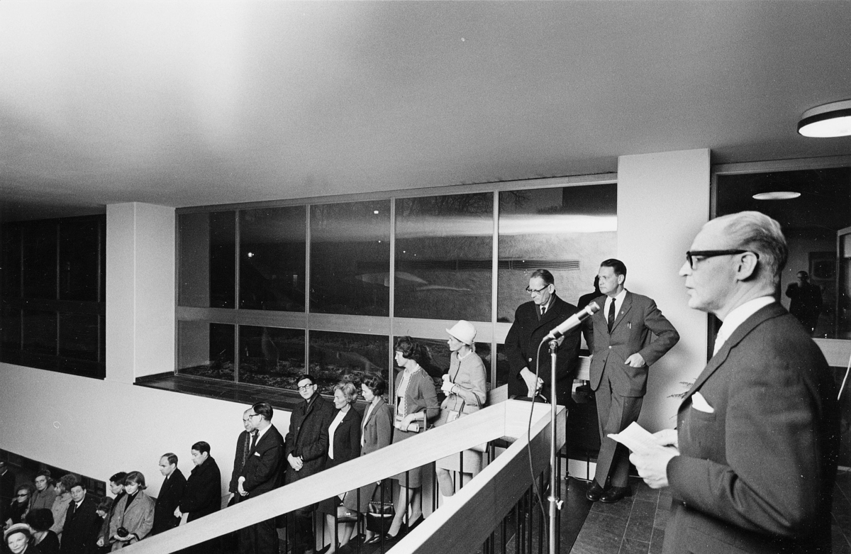Vid invigningen talar postbankschefen Sven Lönnqvist.