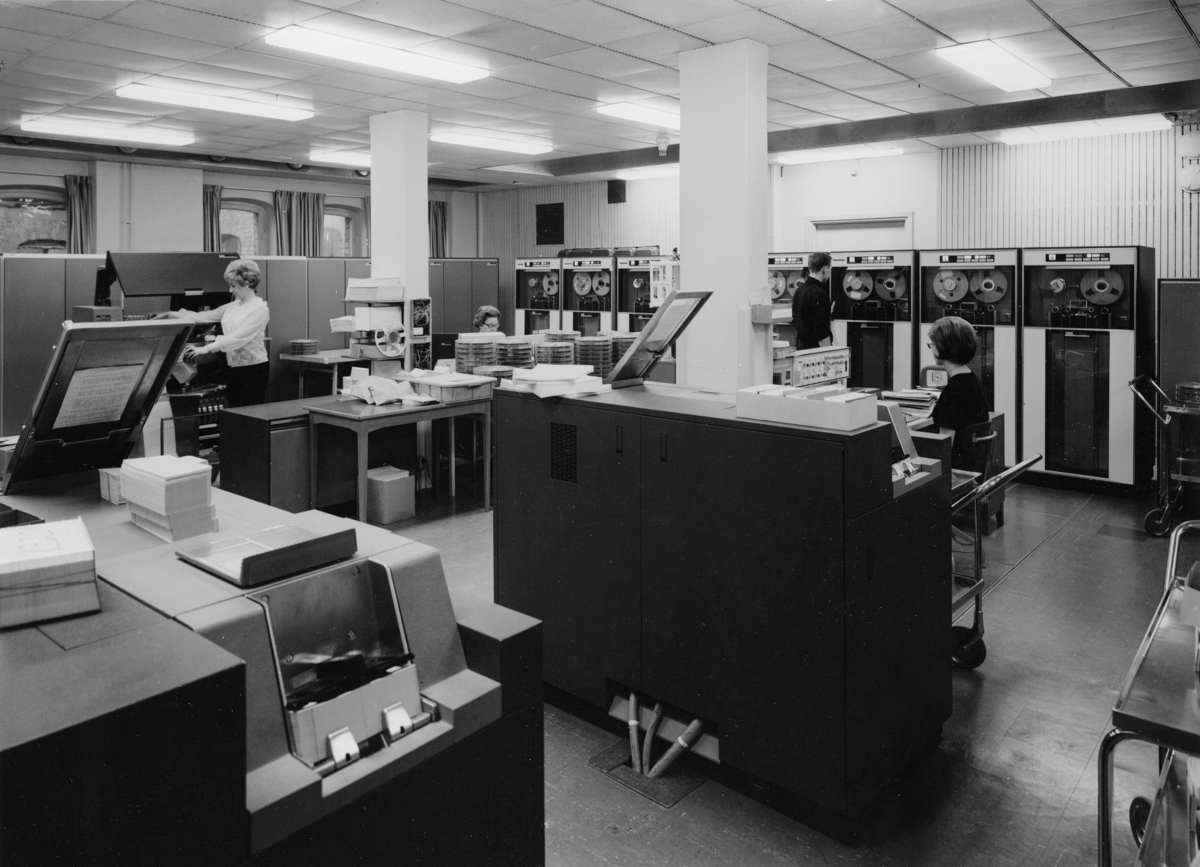 Datacentralen sedd från norr. Fönster i öster i fonden t v.
