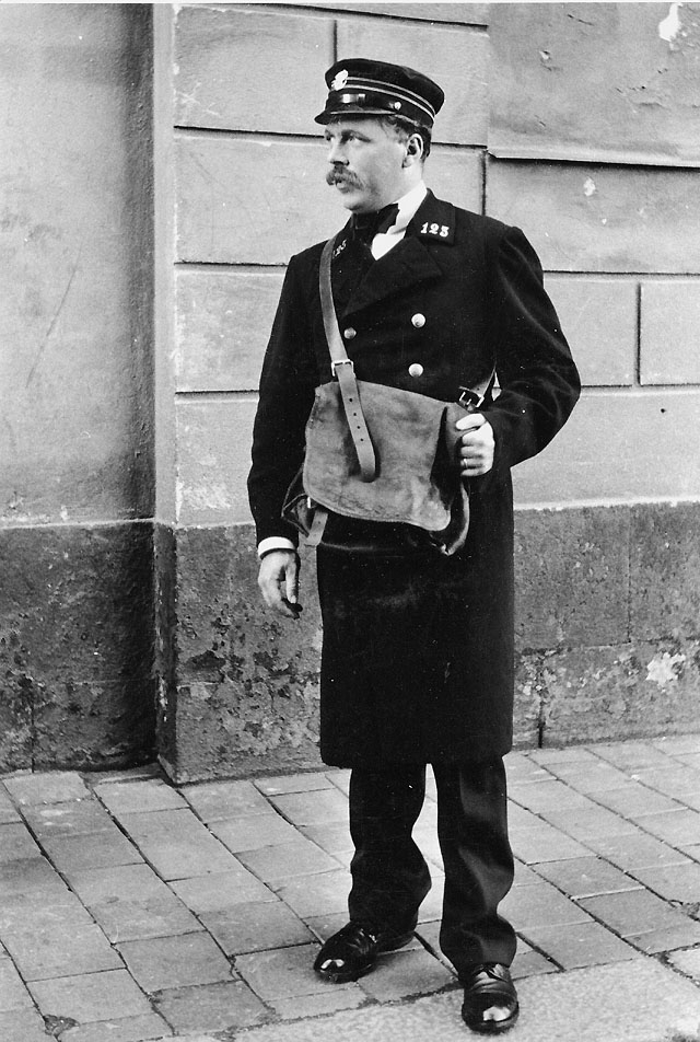 brevbärare, början av 1900-talet, (Uniformen förvaras i Postmuseum)