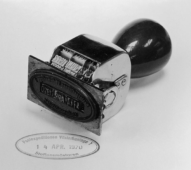 Stämpeln liggande och texten synlig.