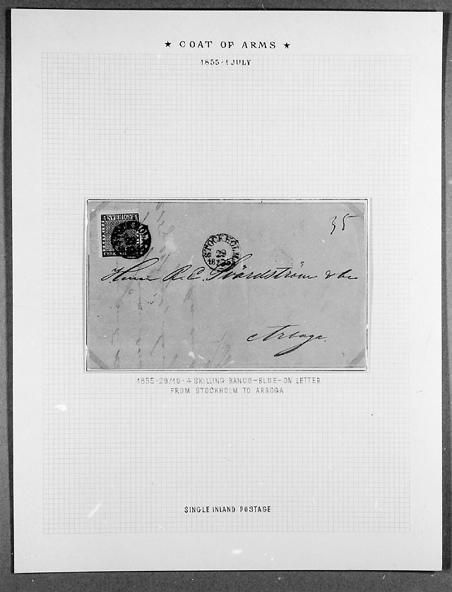 Brev frankerat med 4 skilling banco. Avsänt från Stockholm den 29 oktober 1855 till Arboga.