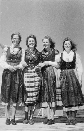 Flickor i Åländsk nationaldräkt. Fr.v. Hjördis Mattsson, Märta