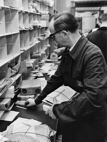 Pkp 310. Kupémästare Sigurd Kassberg "slår" värdebuntar.