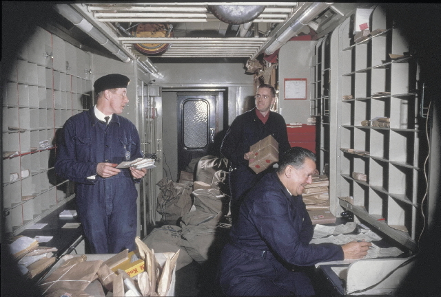Stockholm Ban. Sorterarna i glatt samspråk medan kupémästaren sitter
