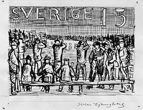 Titel: Frimärksförlaga - skiss - till frimärket Frivilliga Skytteväsendets 100-årsjubileum, utgivet 30/6 1960, av konstnär Sven Ljungberg. (I Postmusei samlingar). Valör 15 öre.