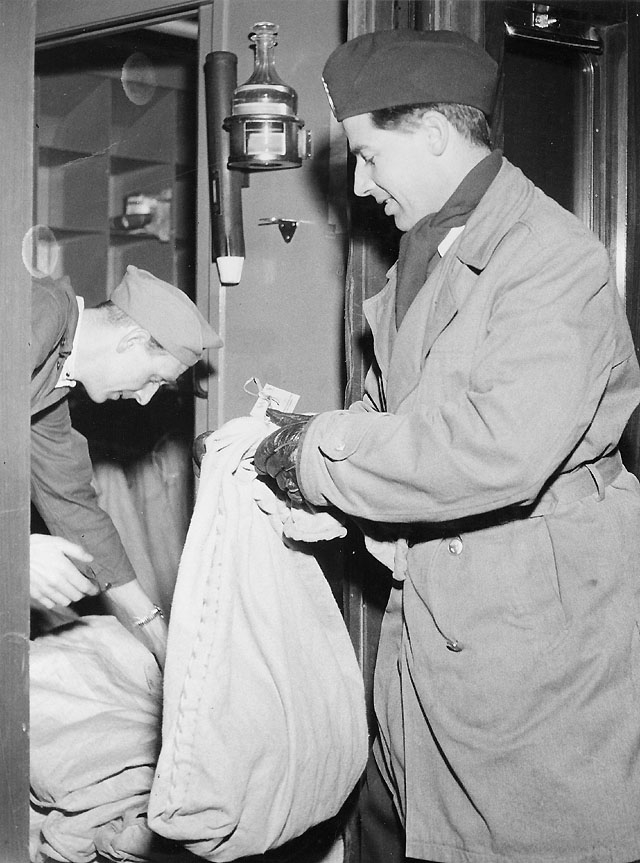 I Linköping lossas och lastas postkupé 34 ned. En tidningspåse från