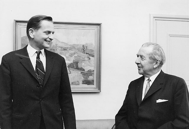 Kommunikationsminister Gösta Skoglund (t.h.) avgår från sin tjänst