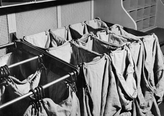 Säckställ av tysk typ (ovalrör) med upphängda påsar. Observera