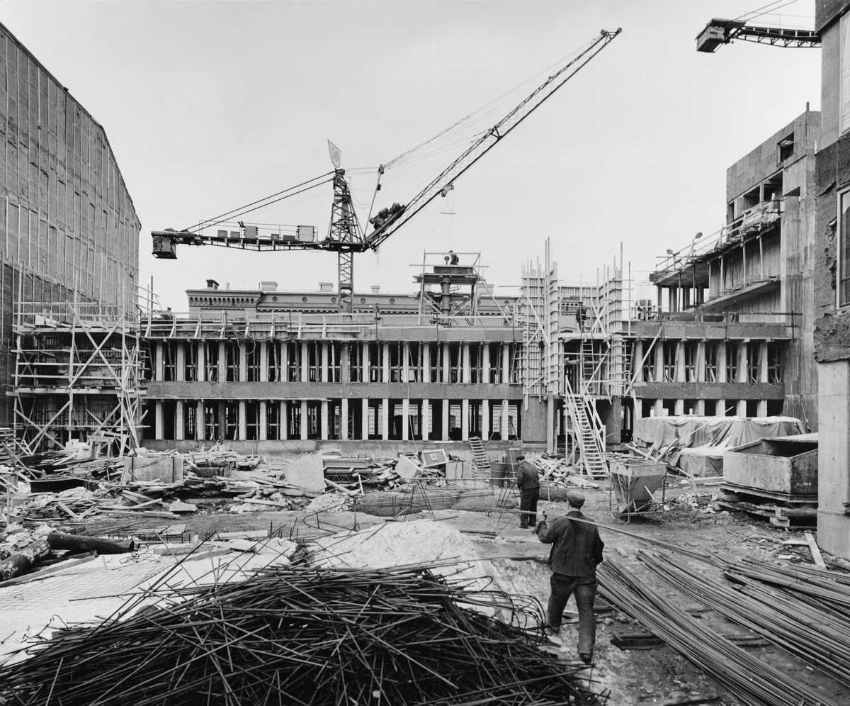 Huset Rådmansgatan 65, med våningarna på 1 och 2 trappor under byggnad, sedd från gårds- sidan. I huset skall postverkets läkarcentral inrymmas, i våningarna 3-5 trappor.