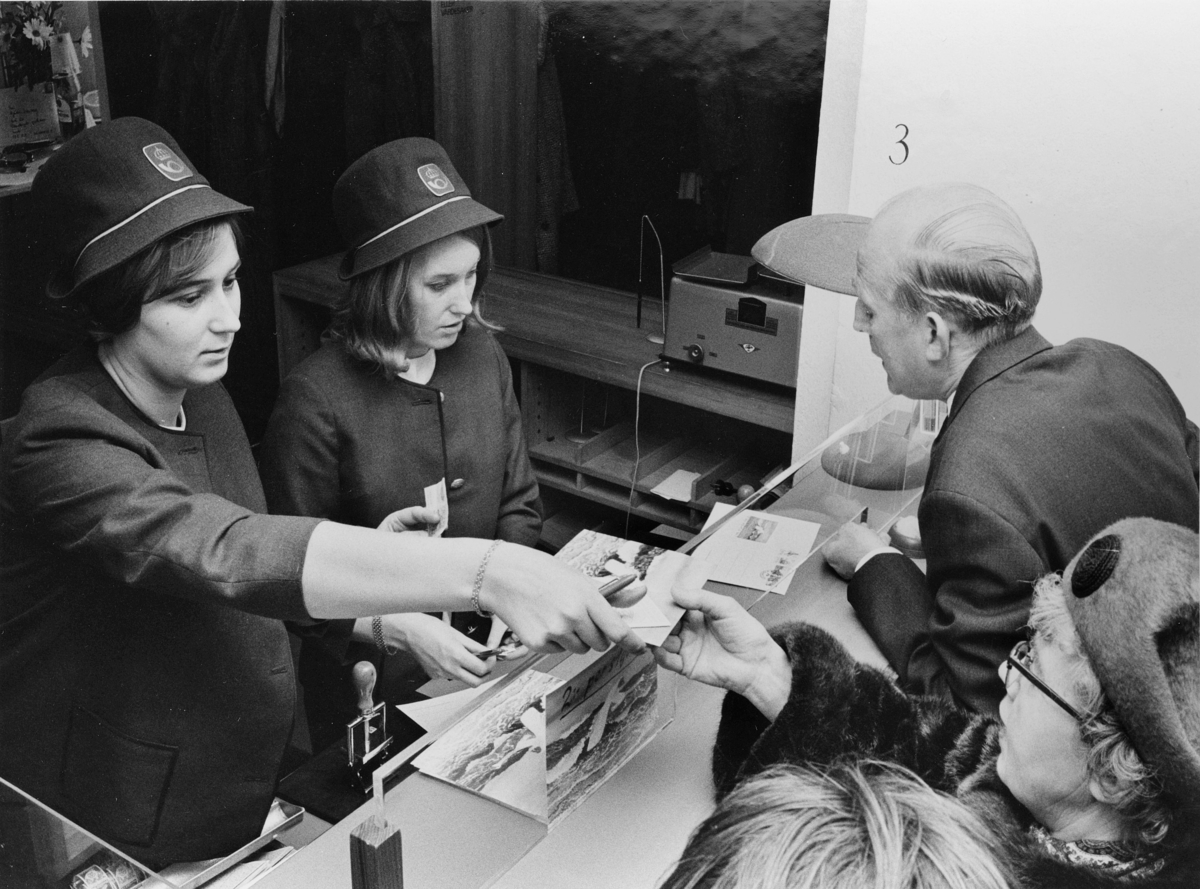 Stockholm 4, i den tillfäl-liga kassaexpeditionen. Posten stämplades