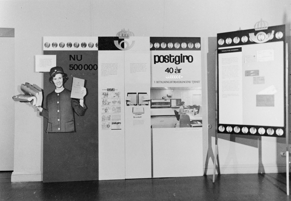 Tre skärmar, i sal III, visande "postgiro 40 år i betalningsförmedlingens tjänst".
