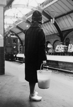 in till Malmö C. Fru Birgitta väntar på perrongen med skurhink och