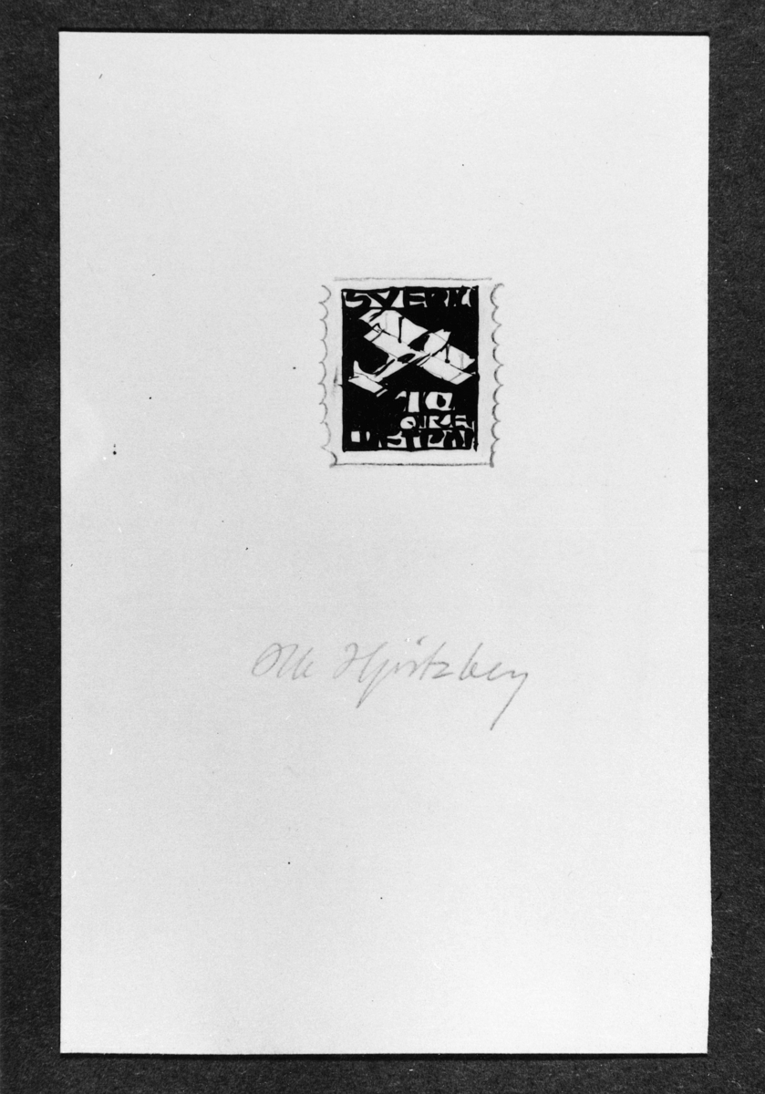 Förslag till frimärke "Nattpostflyg" som gavs ut 1930. Förslaget realiserades inte. Signerat "Olle Hjortzberg".