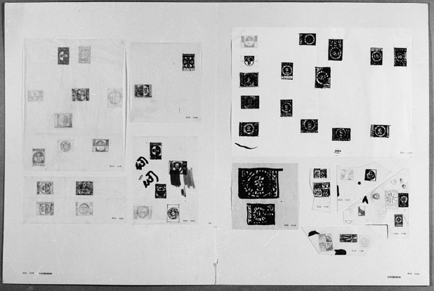 Förslagsteckningar till frimärket Världsflyktingåret, utgivet 7/4 1960. Konstnär: Randi Fischer-Gill. Foton 29/5 1967.