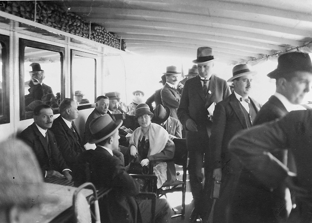 Titel: Värmdön runt med Ångfartyget Visby den 9 augusti. 3:e man från höger: herr Flodman.