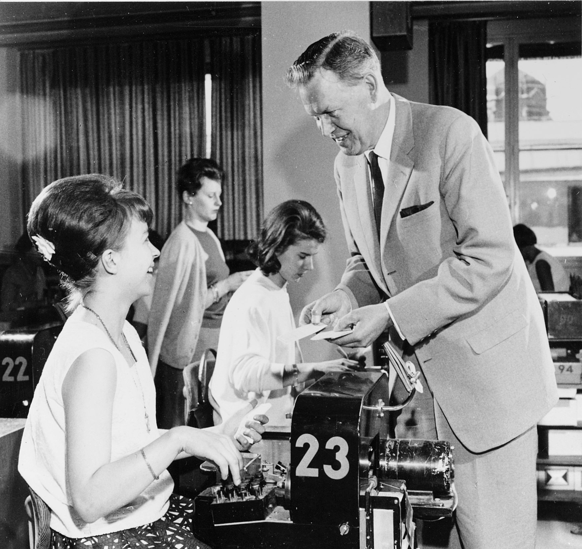 Girobokföringen. Girobokföringens chef, Erik Eronn instruerar.