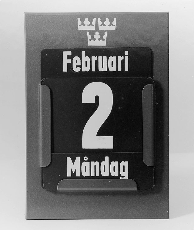 Almanack, s k evighetsalmanack. Brun hållare av plast för