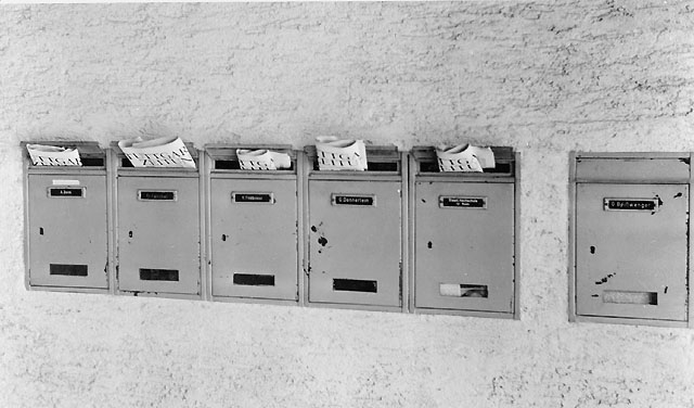 Brevlådor i Stuttgart, Tyskland, uppsatta på privatägda