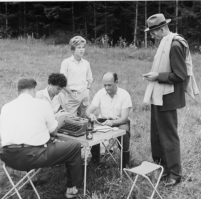 Chefssekreterare Josef Josefsson med medhjälpare sorterar