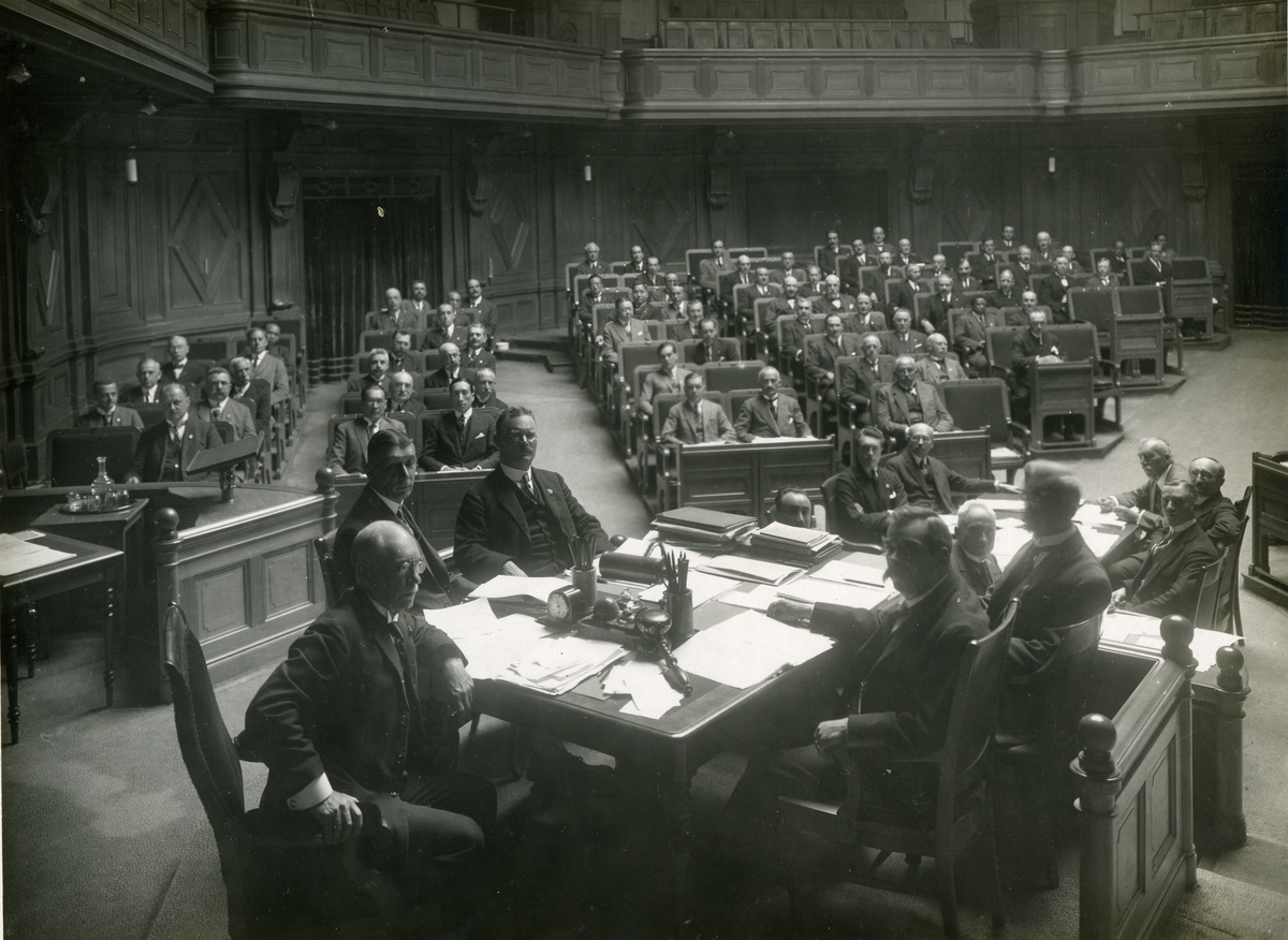 Världspostföreningens kongress i Stockholm1924, plenisammanträde i Riksdagshuset.