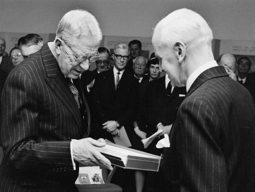 Jubileumshedersgäst var dåvarande kung Gustaf VI Adolf. Han får här
