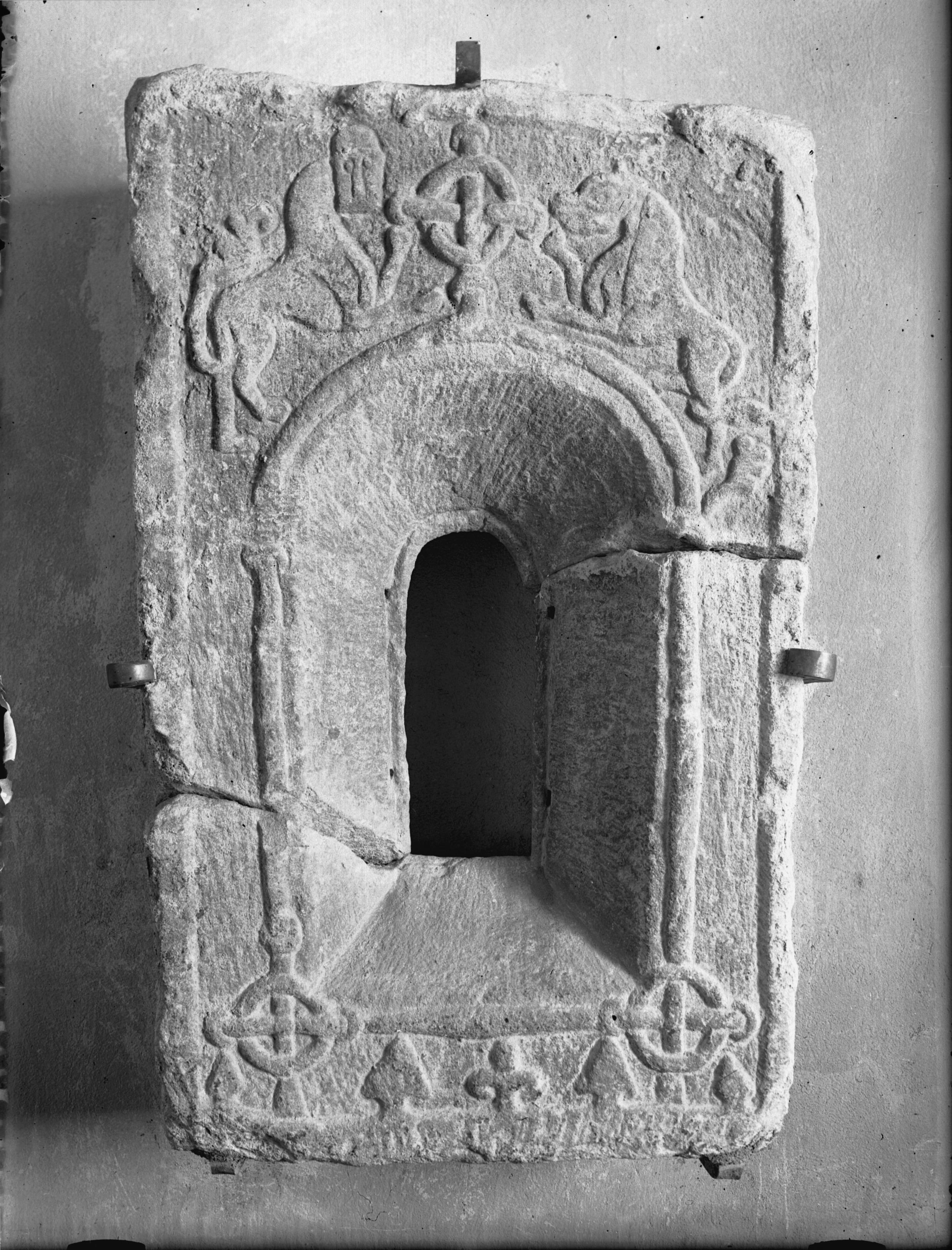 Fönsterinramning av sandsten från Gränna gamla kyrka.