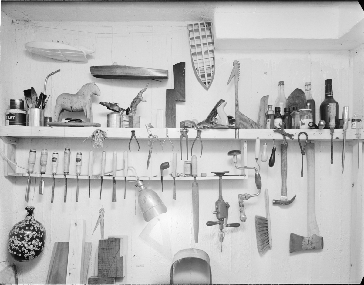Titel: SLÖJDBORD, KORG MED PEDDINGROTTING INTERIÖR, DETALJ