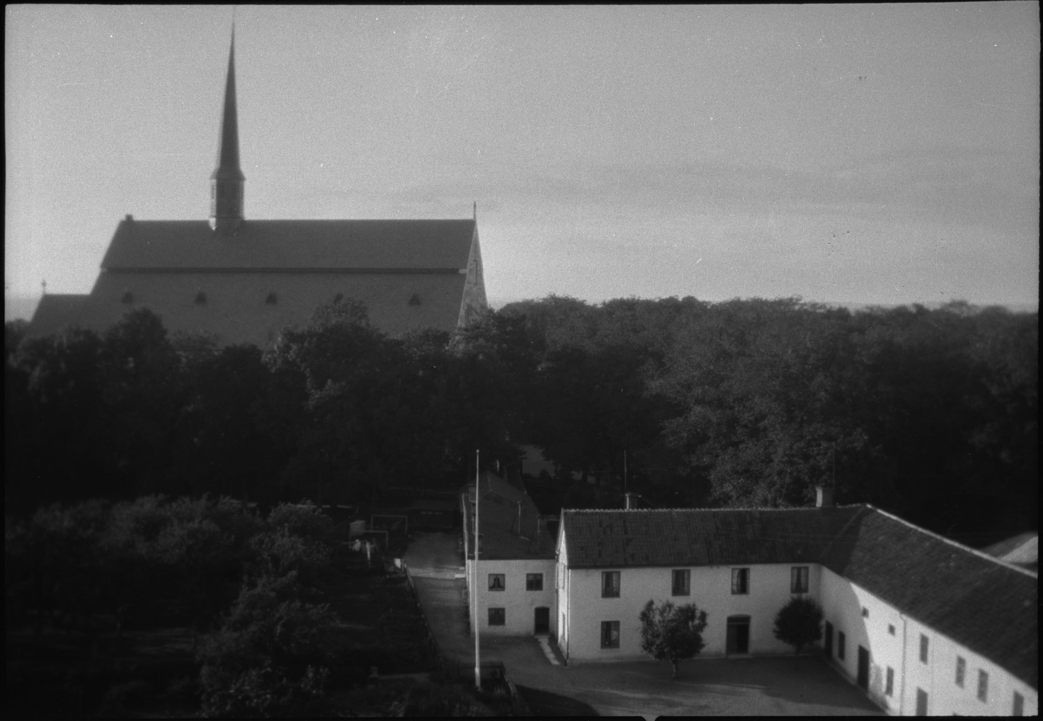 Vy mot Vadstena klosterkyrka och kloster från Rödtornet