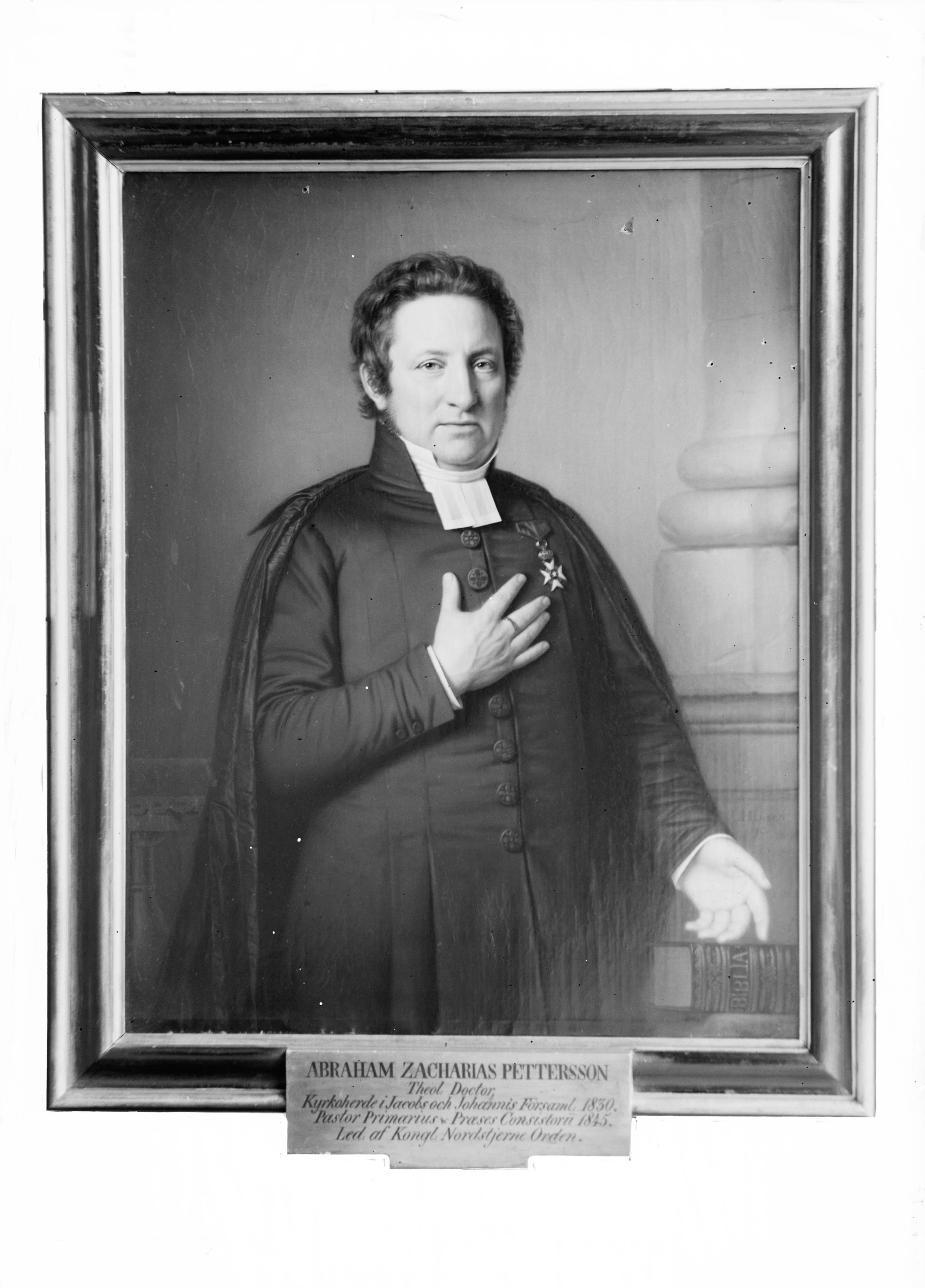 Porträtt, olja, föreställande Abraham Zacharias Pettersson, av L. Hansen 1848.