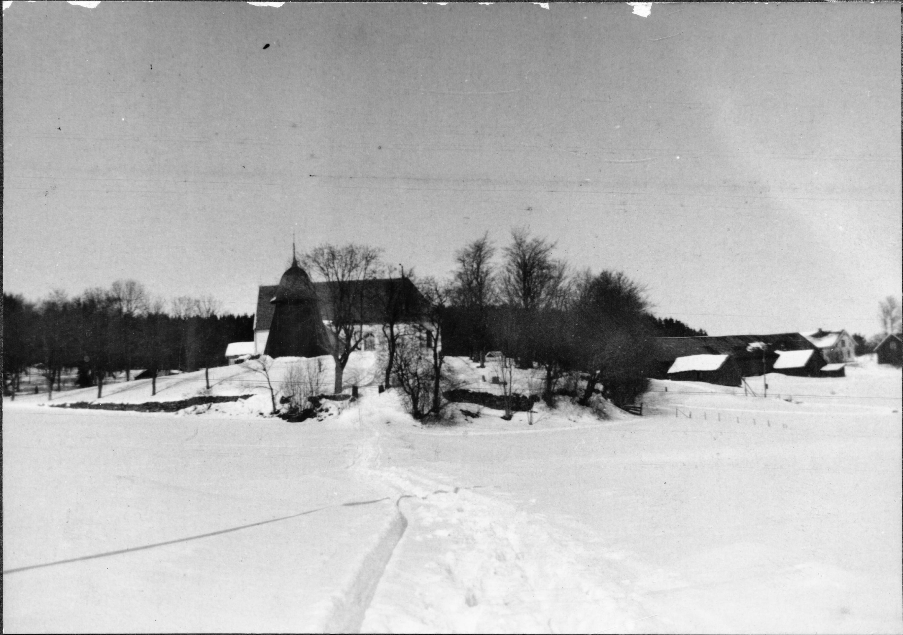 Kyrkan och dess omgivning från söder.
