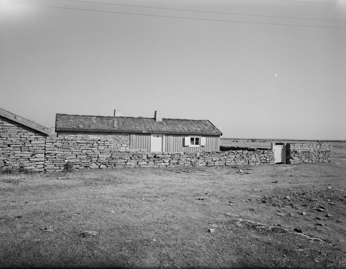 Titel: Fil dr Knut Hagberg (Svenska Dagbladet) interiör o exteriör, Hagbergs stuga på Alvaret. Hagberg själv