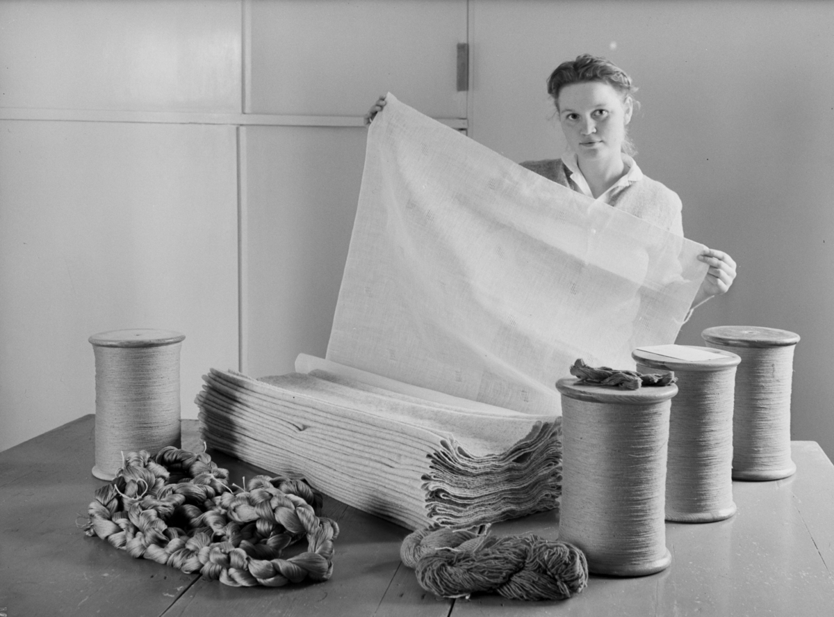 Textilkonstnärinna fru Alice Lund, Borlänge, Dala-Floda, textiltryckare