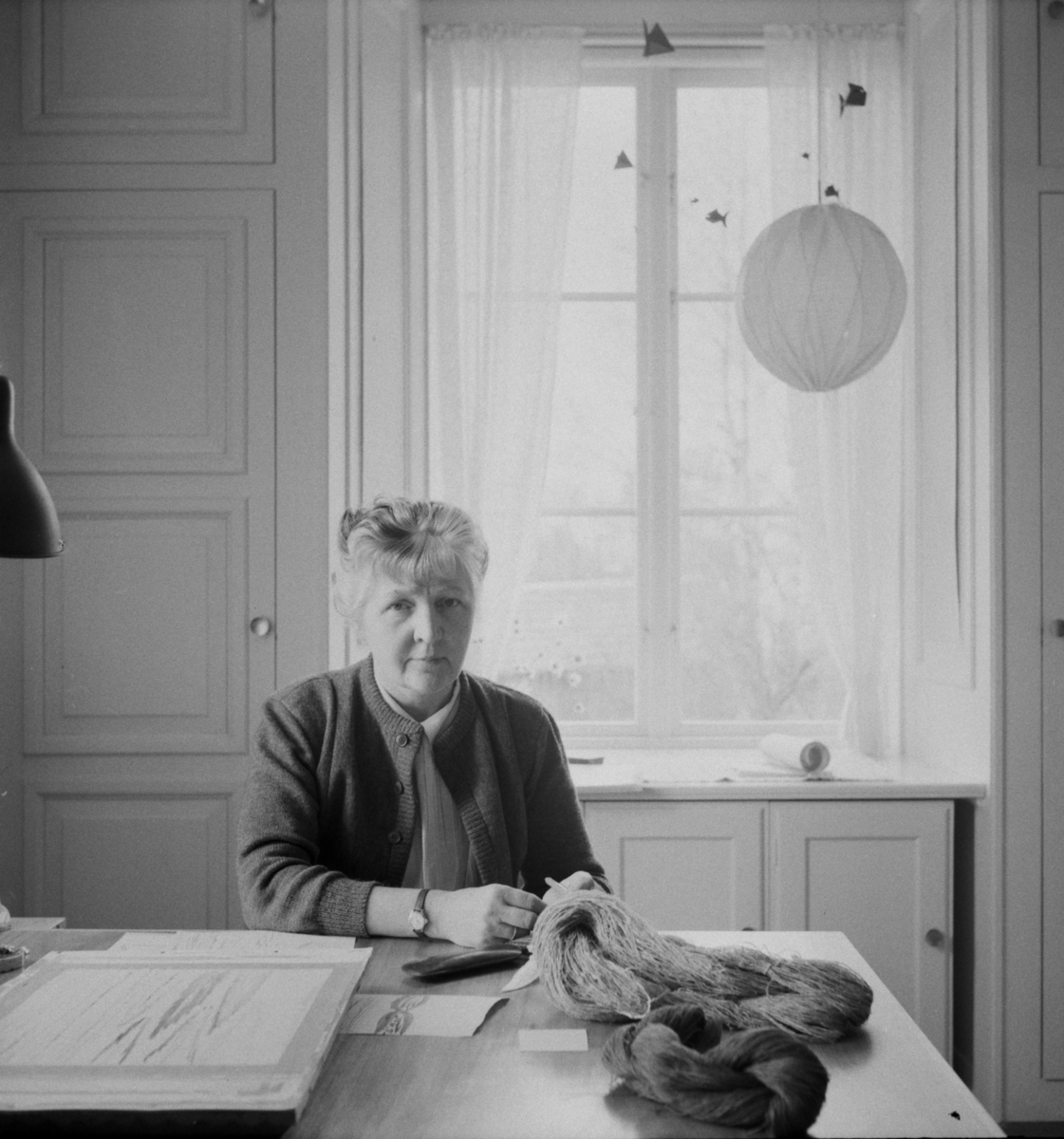 Titel: Textilkonstnärinna fru Alice Lund, Borlänge, Dala-Floda, textiltryckare